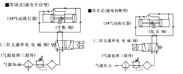 | 基本設(shè)計 | 氣動雙氣缸雙活塞拔叉式傳動機構(gòu); 型號AWxx=雙作用式; 型號AWxxS=單作用式(彈簧復(fù)位)。 |